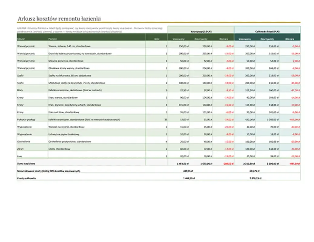 Klucz do udanego remontu: Precyzyjne planowanie z Excel
